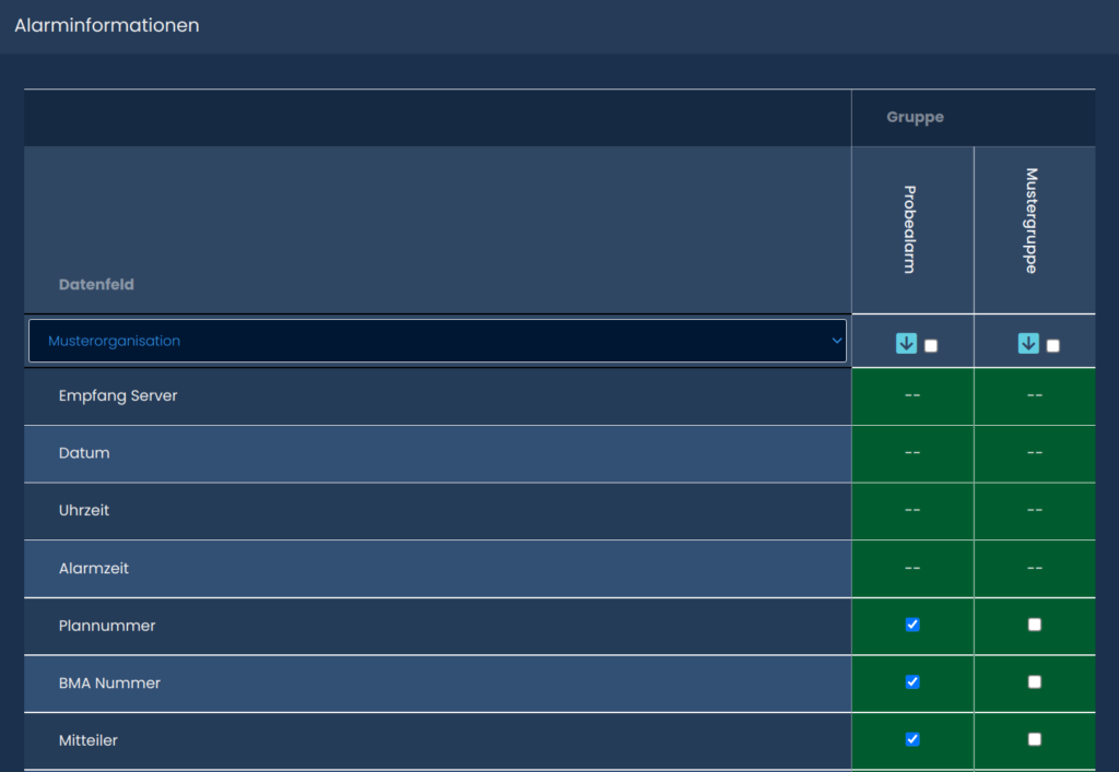 Navigiere zu Alarmierung Alarmdatenmatrix. Du solltest folgendes sehen: