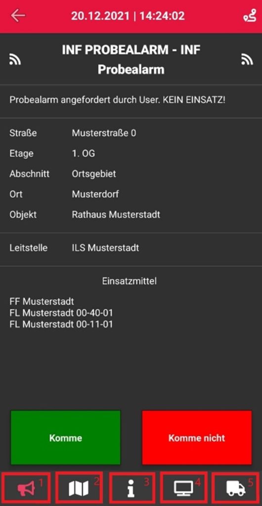 - Das ist der Hauptbildschirm der Alarmierung oben zu sehen