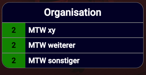"organizationNames": ["FFW Musterstadt", "RD Musterstadt"] | Die "organizationnames" müssen 1:1 vorhandenen Organisationen auf deinem Server entsprechen! |