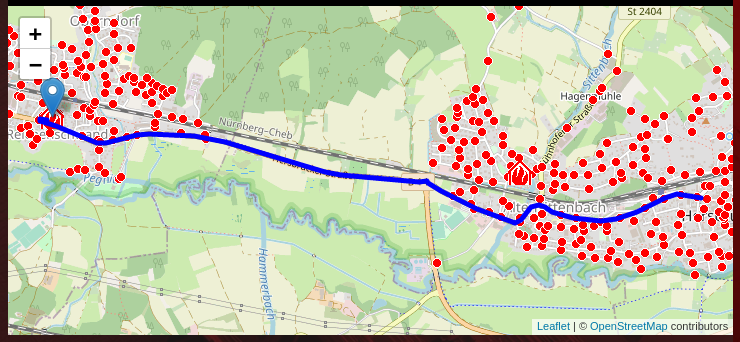 Route zur Einsatzstelle als Karte