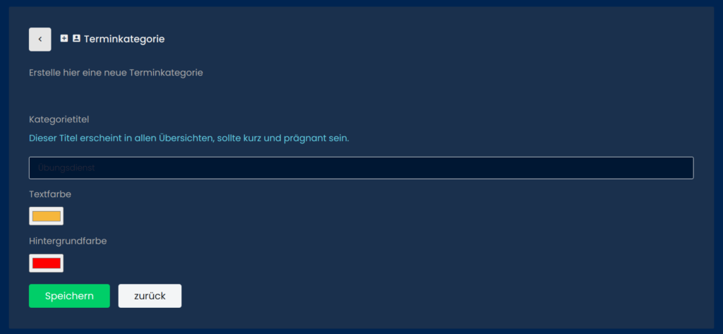 Hier vergibst du den Kategorientitel und stellst die gewünschten Farben ein.