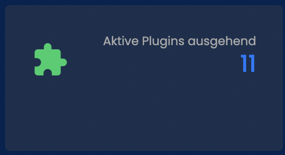 Diese Kachel zeigt die Gesamtzahl der aktuell aktivierten Plugins für ausgehende Dienste an. Ausgehende Dienste sind dabei z.B. Weitergabe von Alarmierungen an die ALARMiator mobile Apps, MQTT, Divera und weitere. Ein Klick auf die Zahl führt den Anwender direkt in die Verwaltung der Plugins.